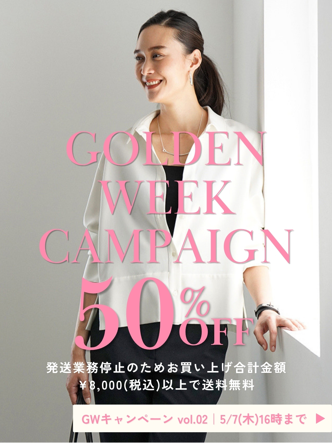 2)GWに伴う発送業務停止のため、キャンペーン期間中お買上合計金額¥8,000(税込)以上で送料無料