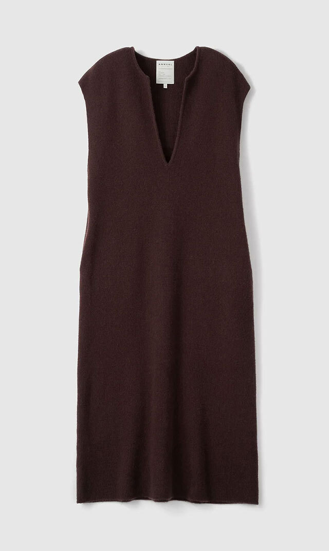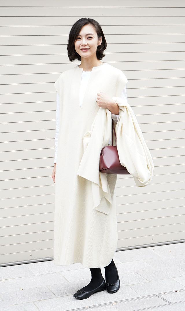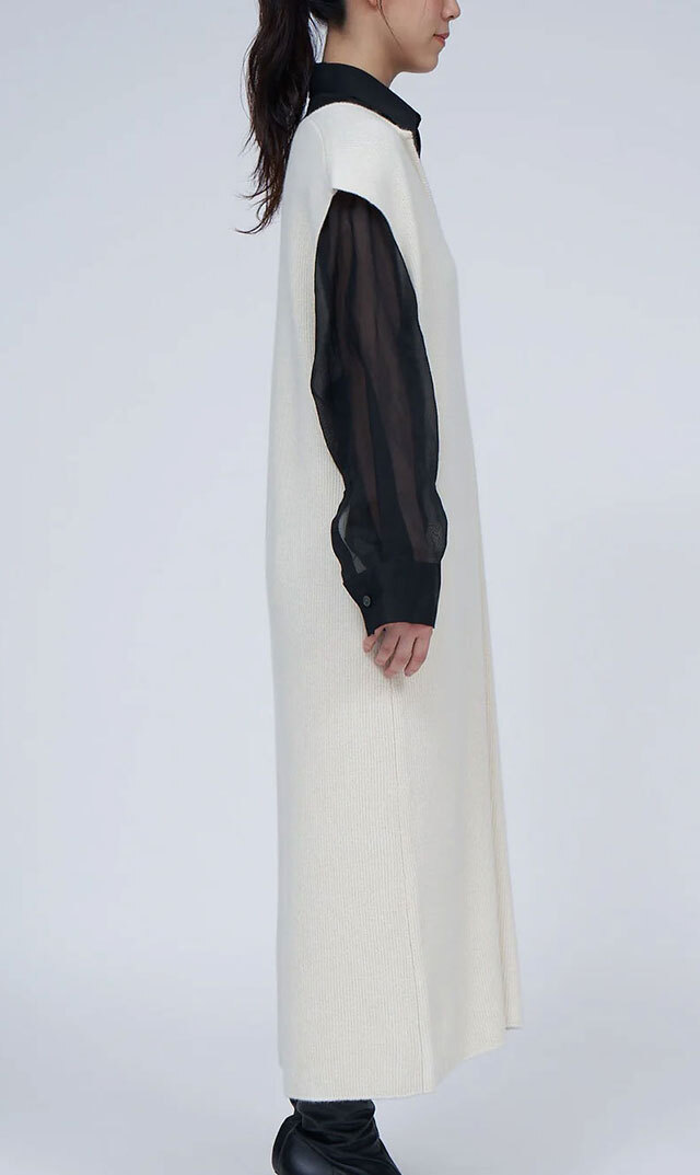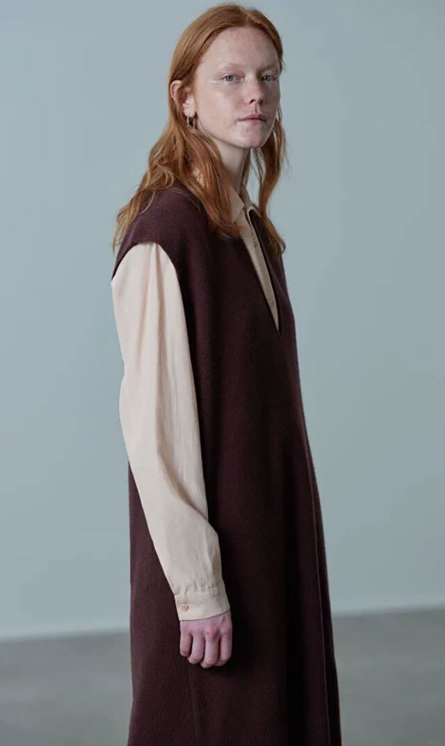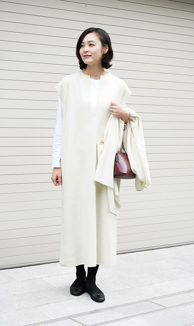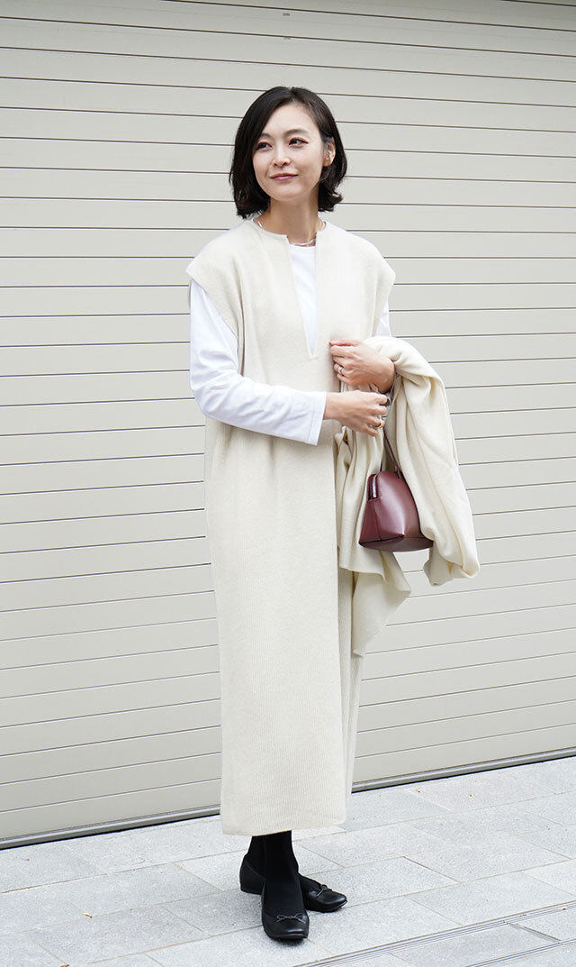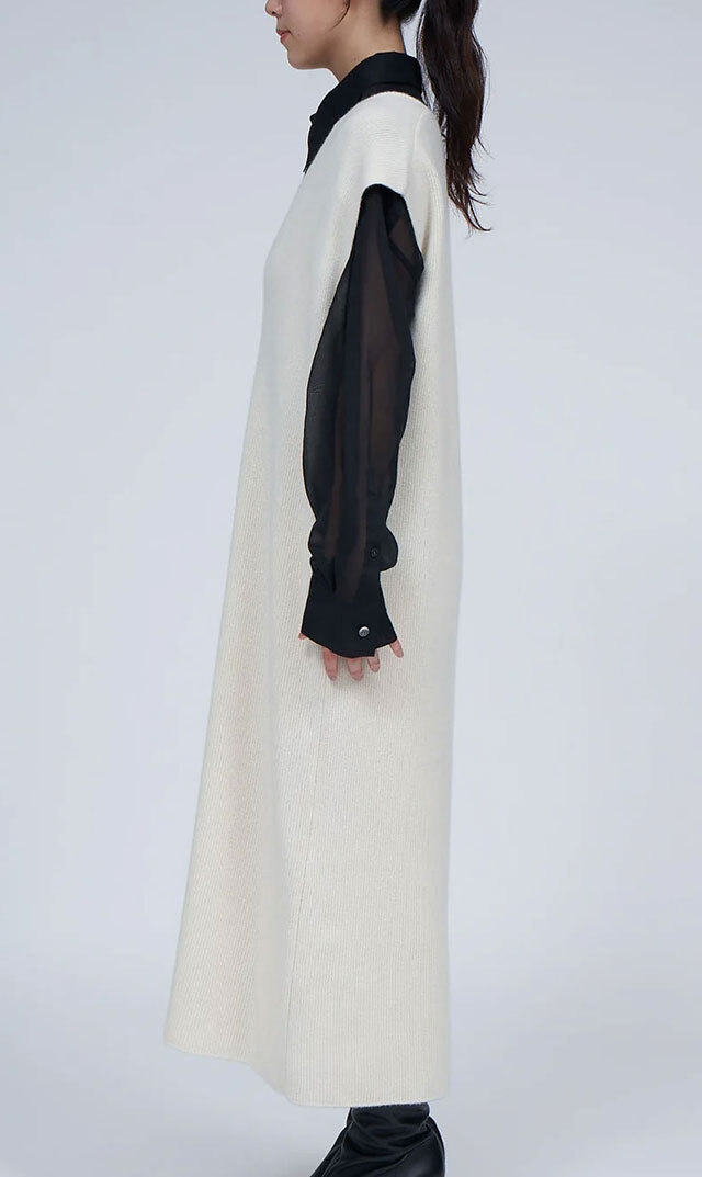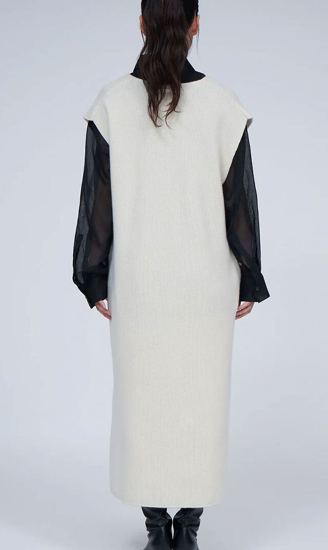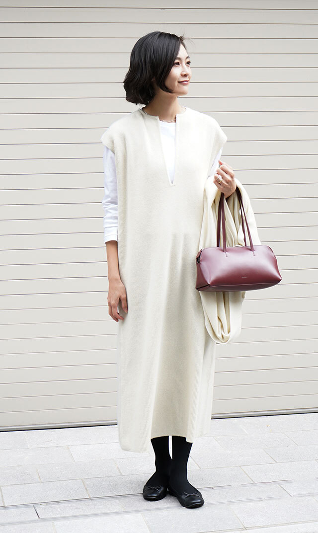 高品質なニュージーランドメリノウールを使用し、多くの方が着用できる絶妙な丈感の “KAFTANニットワンピース”