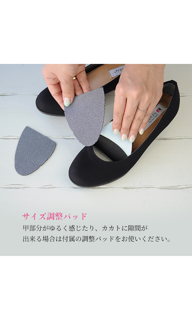 ●履いているうちにゆるく感じたり、かかとに隙間が出来る場合などに対応できる調整パッドつき