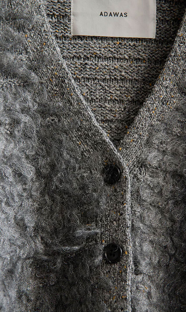 ・ツイードヤーンとキッドモヘヤのループ編みを組み合わせた、表情豊かな素材。