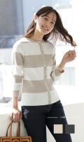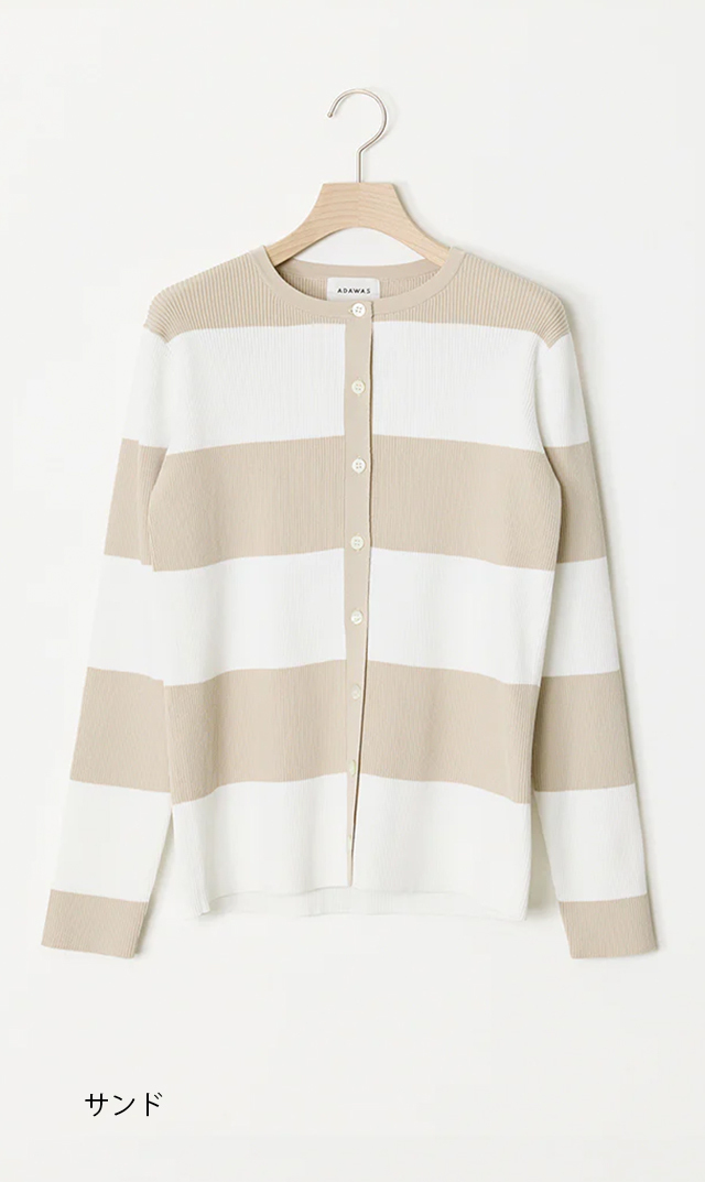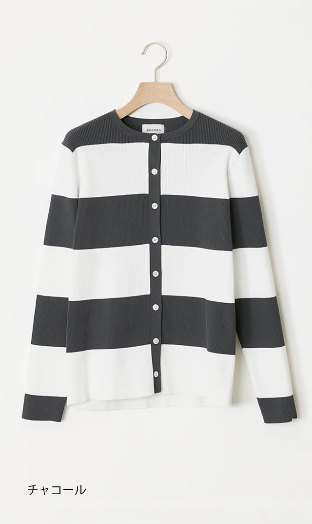 ・ベーシックなクルーネックをベースに、広めピッチのボーダー柄を組み合わせ。