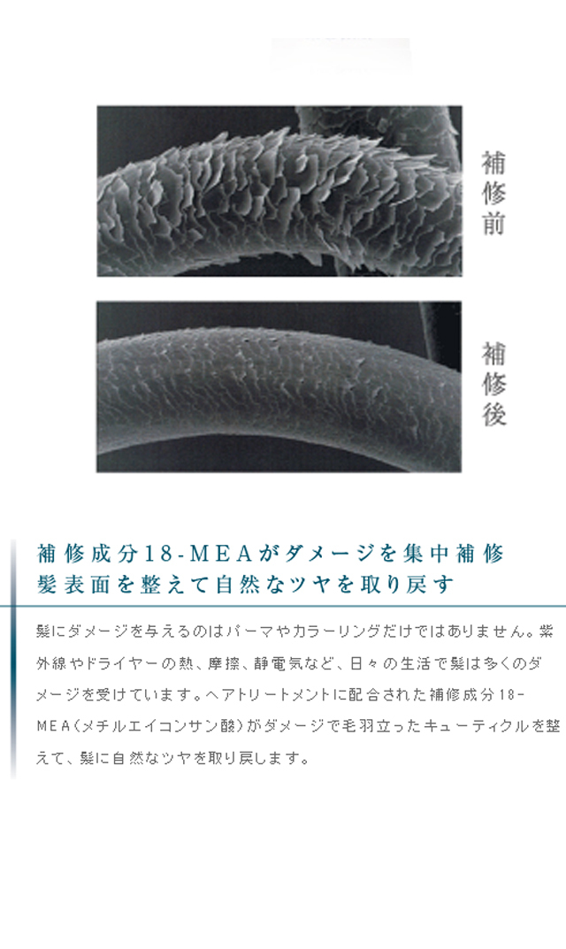 ご使用方法:シャンプー後、十分に髪の水分をとり、適量を手のひらで伸ばしてから毛先を中心に塗布し、3-5分程度おいてからぬるま湯で十分すすいでください。