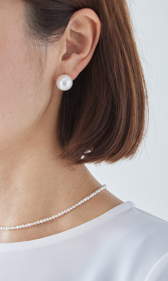 華やかな白の淡水パールは、大きめサイズでもその上品さを損なわず、お顔まわりをぱっと明るくしてくれます!