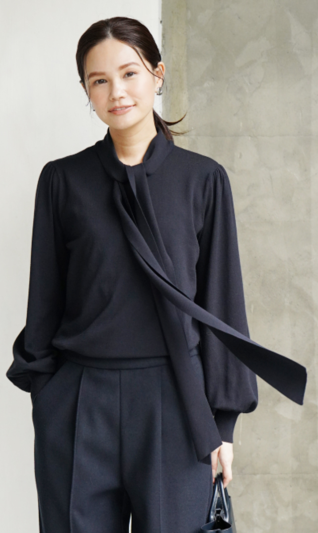 ぜひリボンもご使用いただき、2wayで着こなしを楽しんでいただけたらうれしいです。