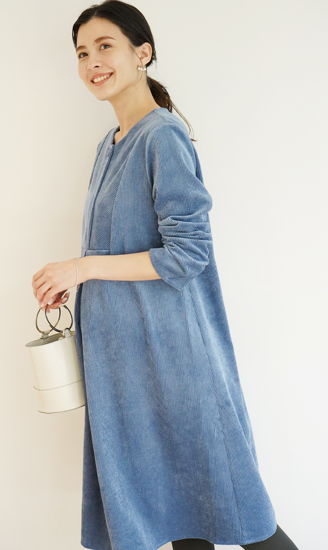 妊娠中だった去年は物流が滞った影響か、好みのマタニティ服に出会えずちょっと寂しい秋冬だったのですが、産後に思いがけず素敵なワンピースを着られて嬉しいです。