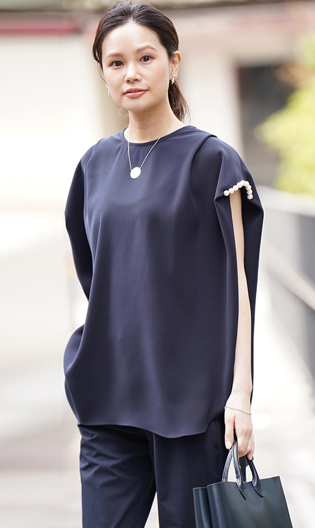 全然アパレルと関係ないお買い物の時に、窓口の方から、そのお洋服素敵ですね、と声をかけられました。お袖のパールがあまり見ないデザインだと。