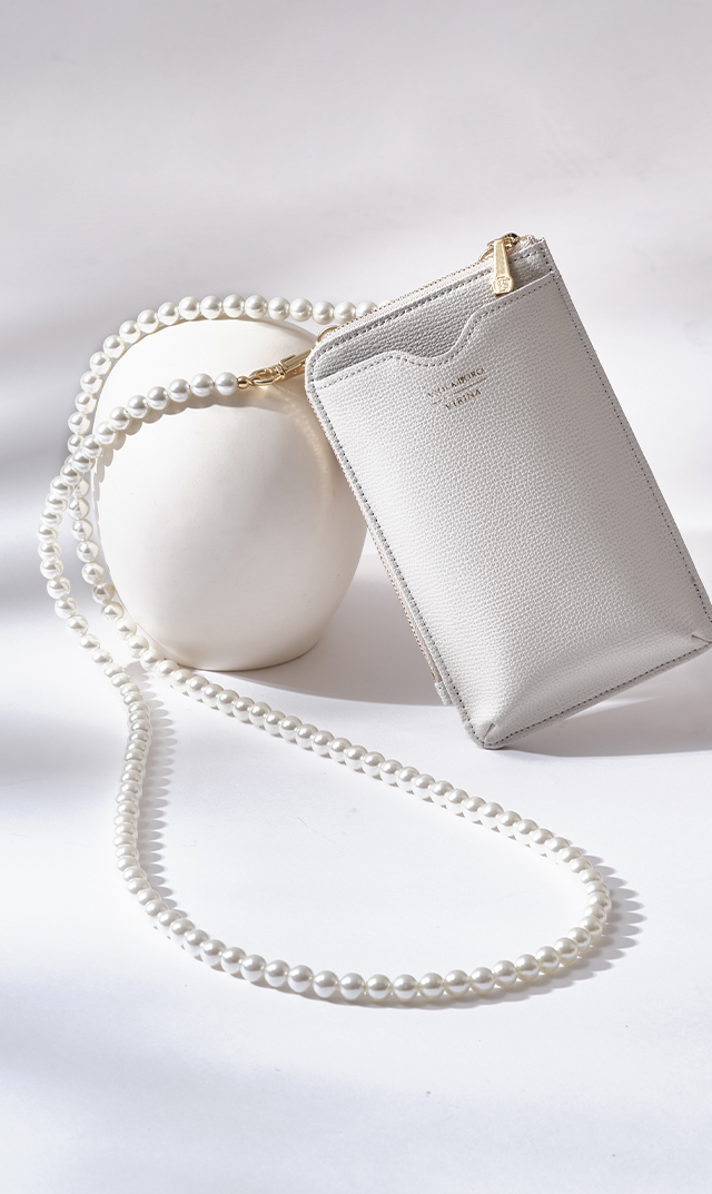 手持ちのバッグのストラップ付け替え用に購入しました。パールが安っぽくなく、しかも軽くて良いです。金具がシルバーのものがあって良かったです(手持ちのバッグの金具がシルバー)。