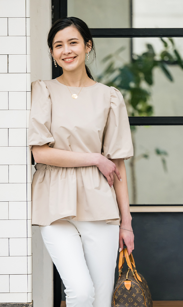 産後太ってしまい、可愛く着れる服があまりありませんでしたが、とっても素敵なブラウスでした。白の色が想像以上に鮮やかな白だったので、ブルベの人の方が似合う白かもしれません。
