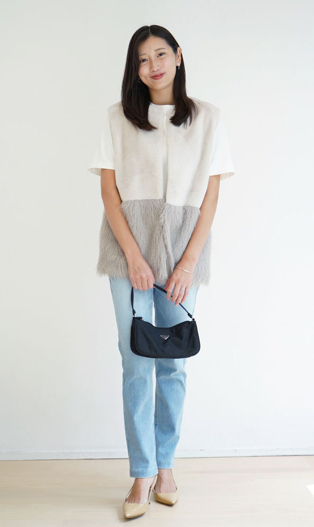 ・シンプルなシルエットは、合わせるシューズやバッグでスタイリングの印象をグッと変化させられるのも高ポイント。