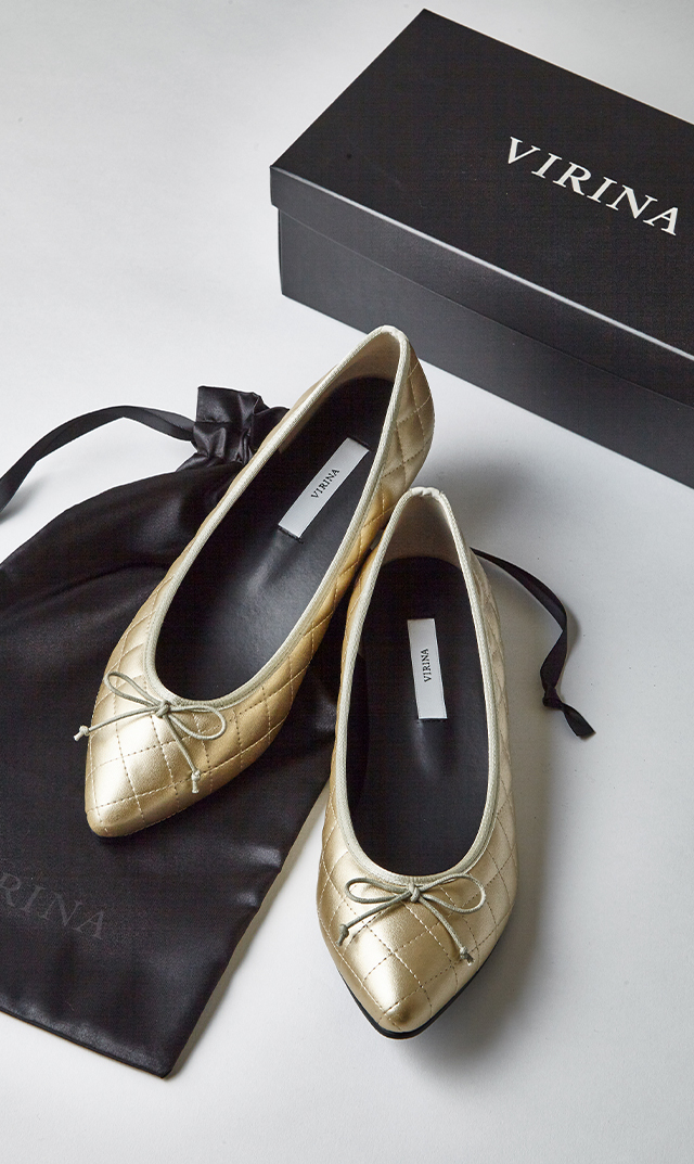 クラシカルで上品な雰囲気がどんな服にも合わせやすいキルティングバレエシューズ