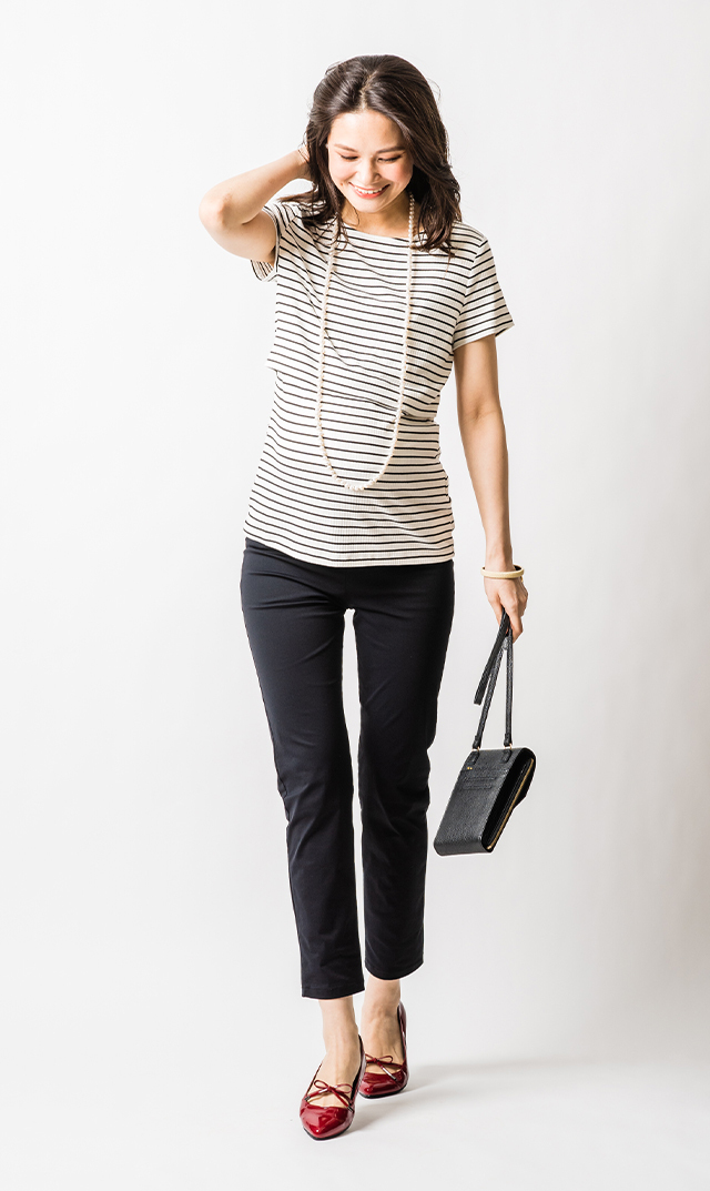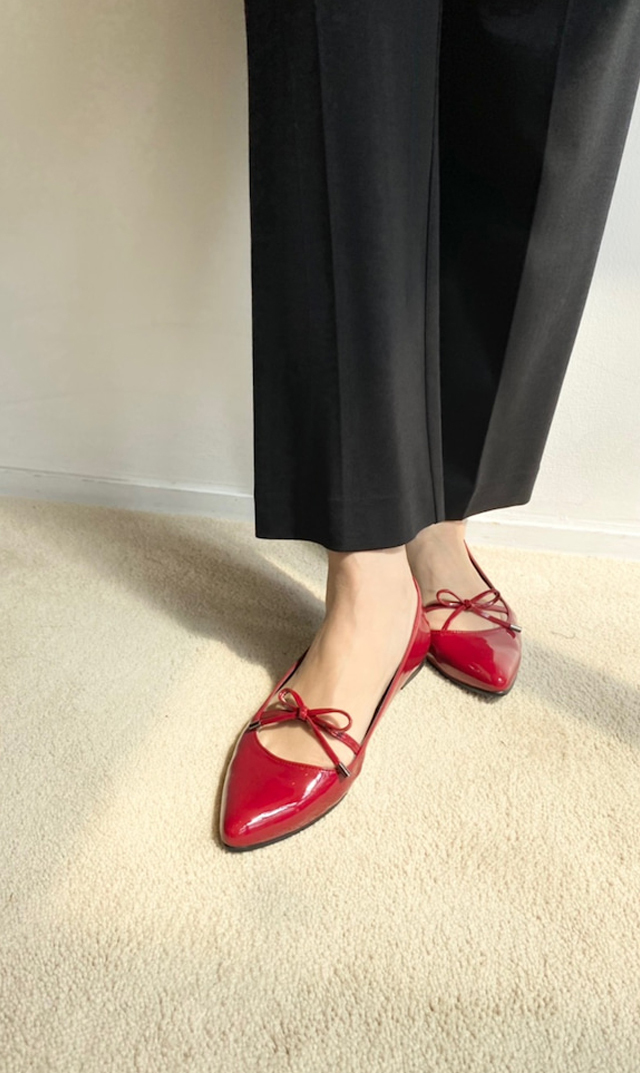 ●足が細く見える美しいフォルムと、キュートなリボンも◎。