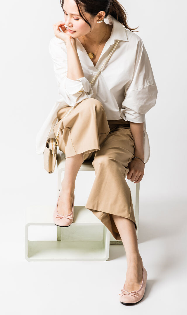 ●足が細く見える美しいフォルムと、キュートなリボンも◎。