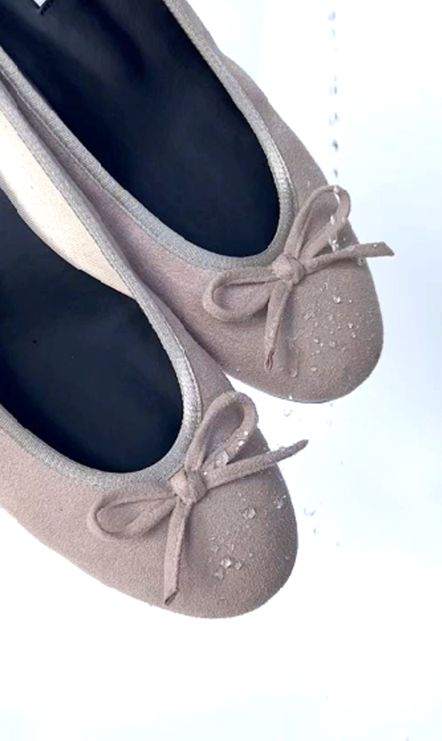 なめらかで優しい風合いが目を惹く、撥水機能付きのスエードバレエシューズ!