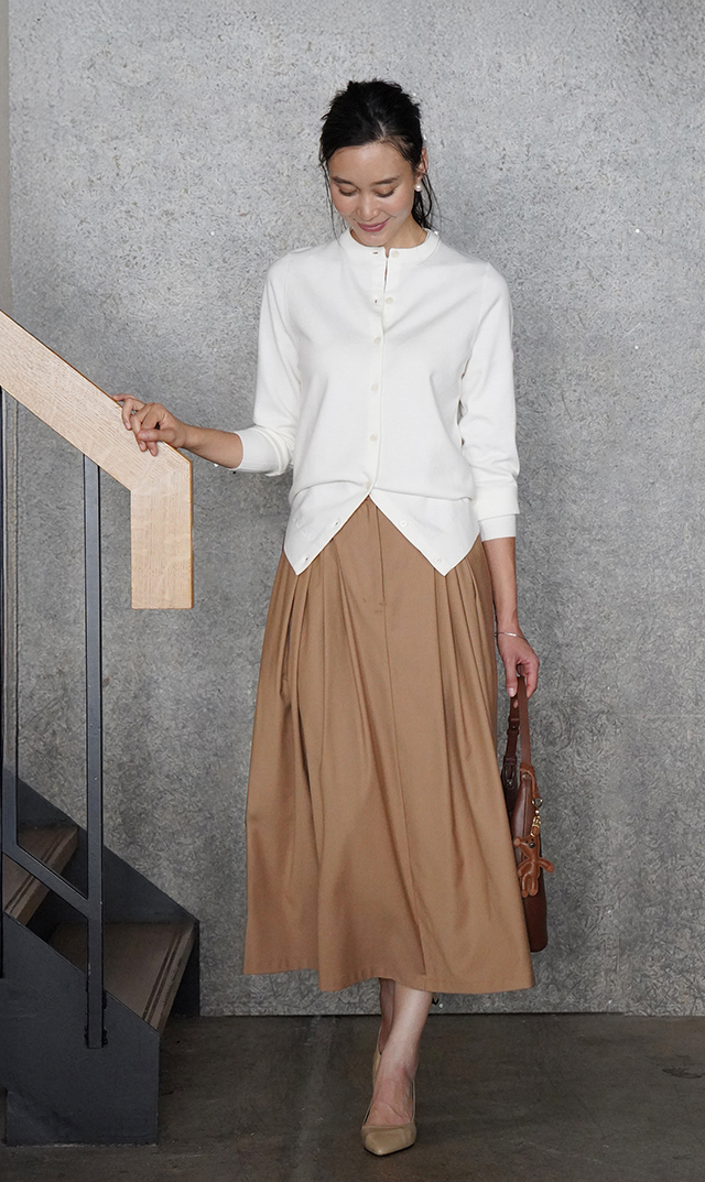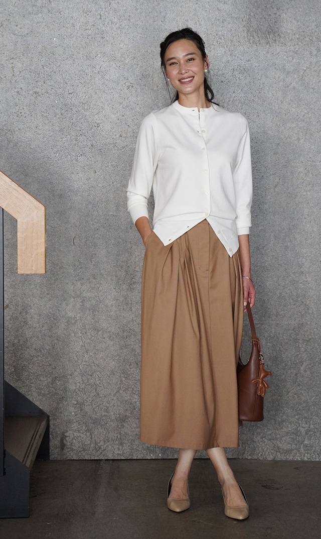 ・ナチュラルでしなやかな素材感が等身大の上品さを放つ。