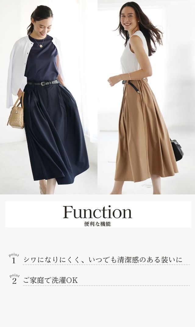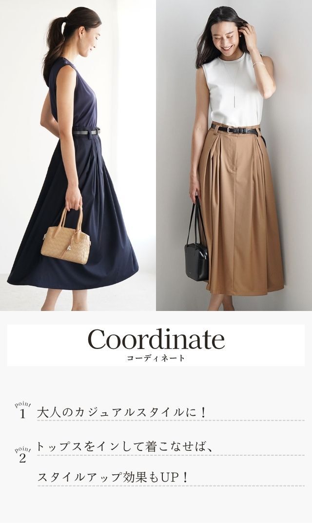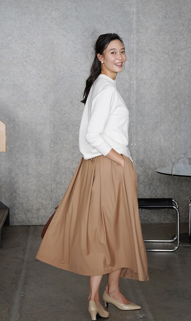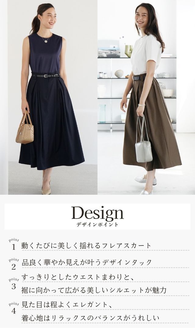 デザインタックが目を惹き、優雅に広がるフレアシルエットが大人心を魅了する“クレールスカート”