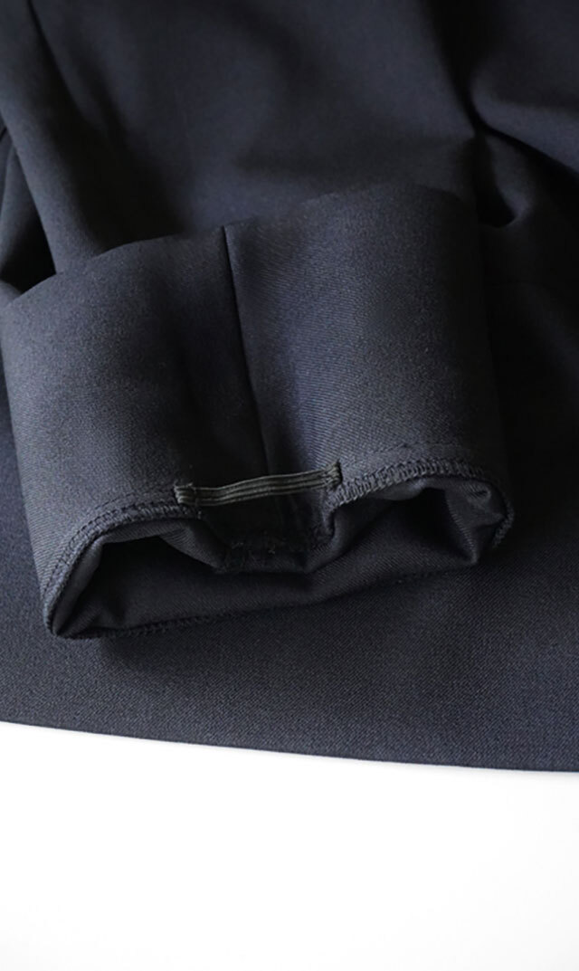 - XS/S:胸囲121cm、肩幅47cm、袖丈54.5cm、総丈(前身頃)56.5cm、総丈(後ろ身頃)60.5cm