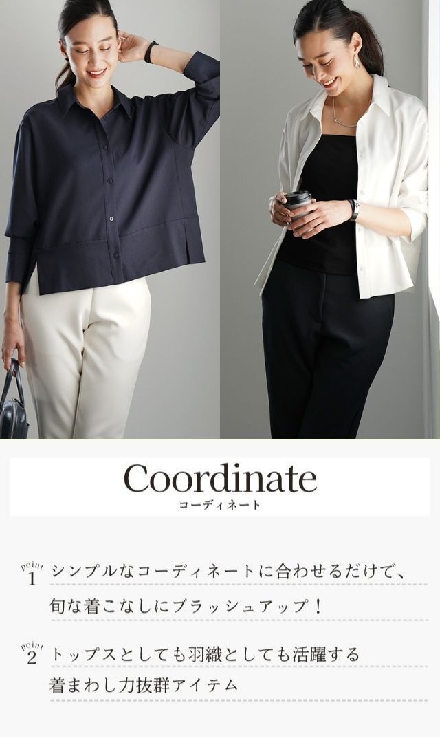・トップスとしても羽織としても活躍する着まわし力抜群アイテム。