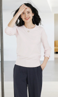 シルク混の美しい表面感としっとりとした優しい風合い、着まわし力の高さが魅力の“アデルクルーネックニット”