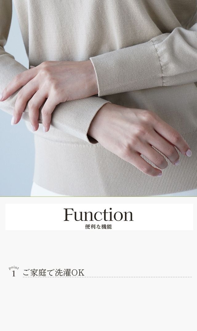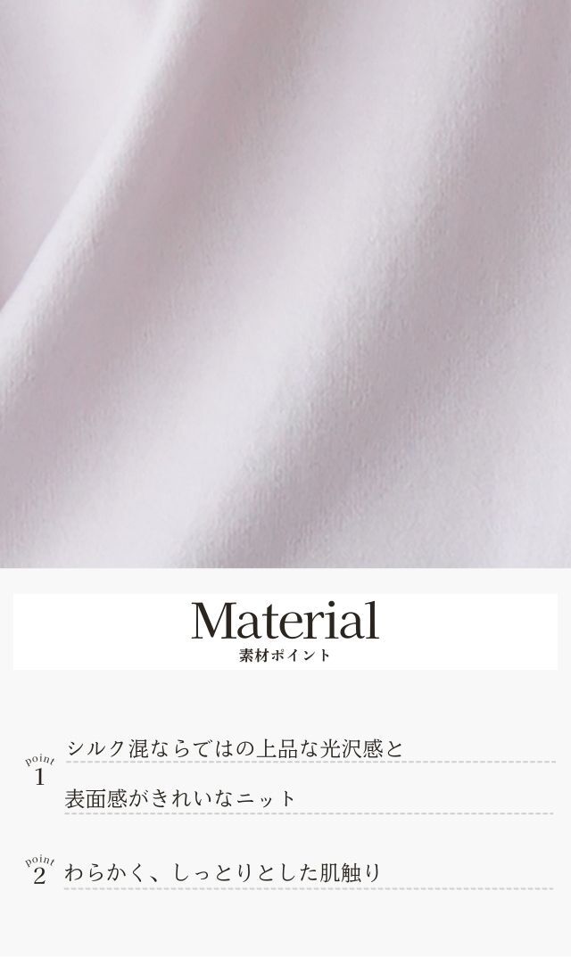 ・シルク混ならではの上品な光沢感と表面感がきれいなニット。