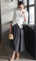 ・大人の洗練ムードを引き立てるフレアスカート。