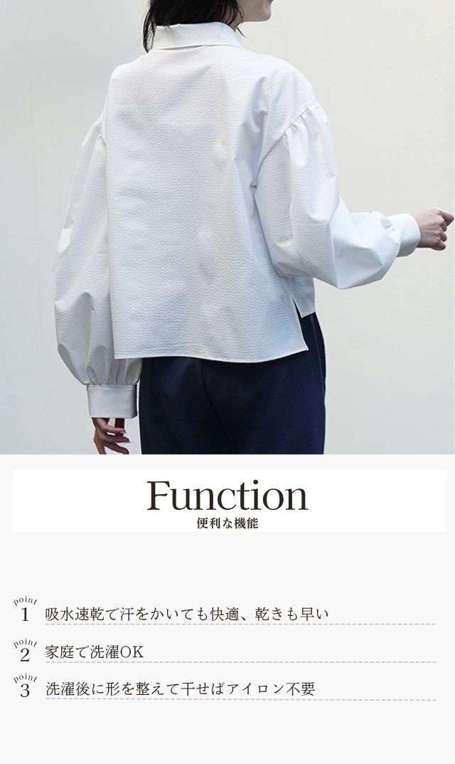 ・適度なハリ感を生かし、袖はふんわりとボリューム感のあるシルエットをキープ。