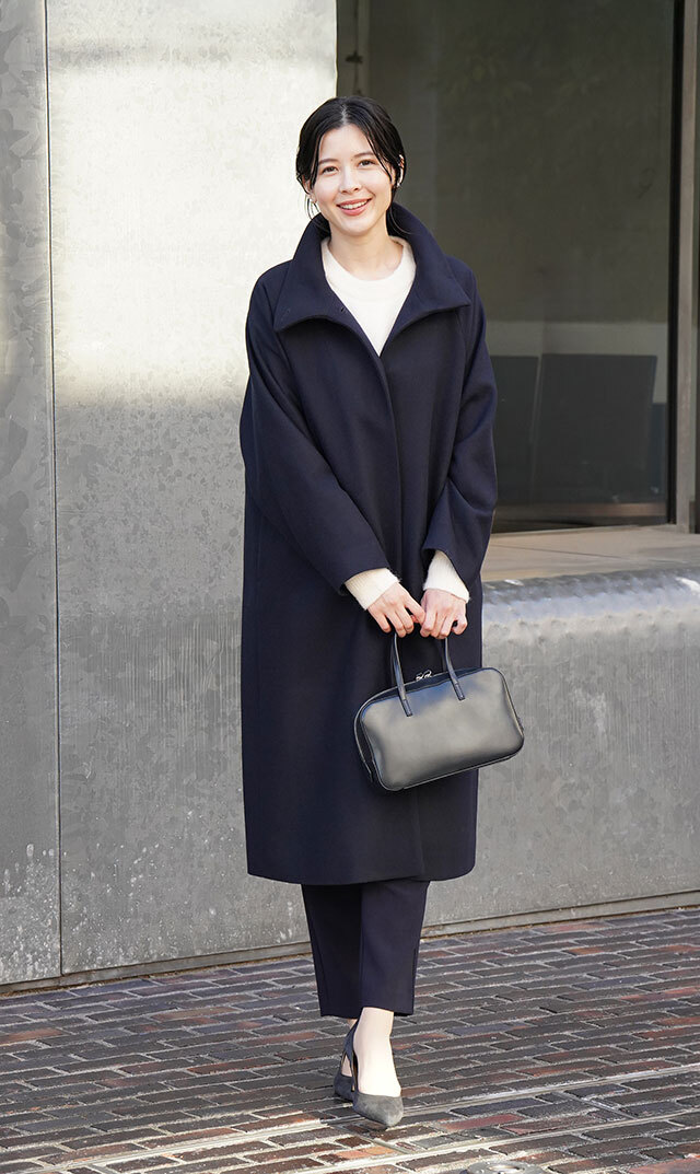 ・ボタンを閉めるきちんとスタイルはもちろん、さっと羽織るだけのスタイルもエレガントで素敵!