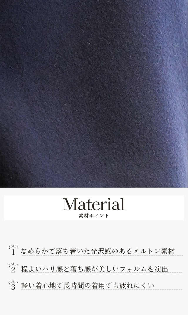 ・なめらかで上質な落ち着いた光沢感のあるメルトン素材。