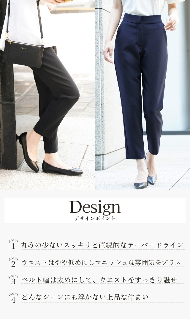 絶妙なシャープなラインで美脚を叶える“アヴァテーパードフロントジッパーパンツ”