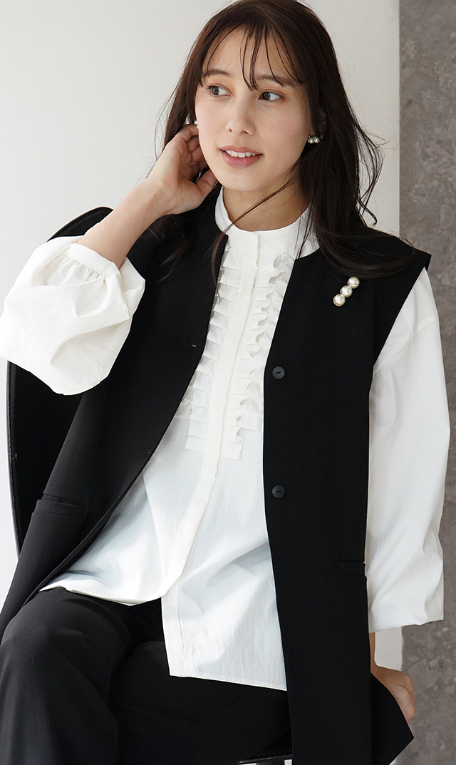 ・きれいめブラウスにブローチなどのスタイリングでオケージョンにもおススメ!