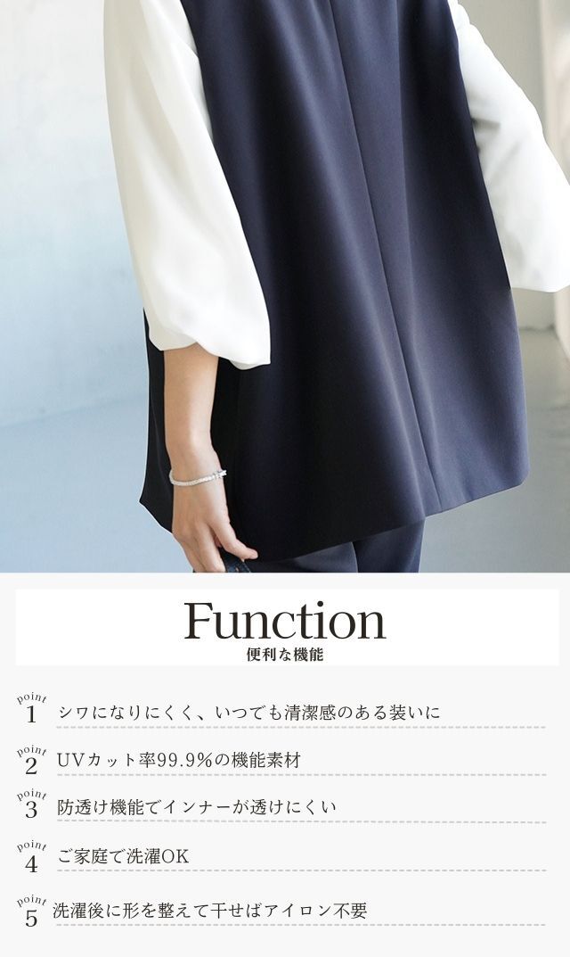 本体/ポリエステル72%、レーヨン21%、ポリウレタン7% 裏地/ポリエステル100%