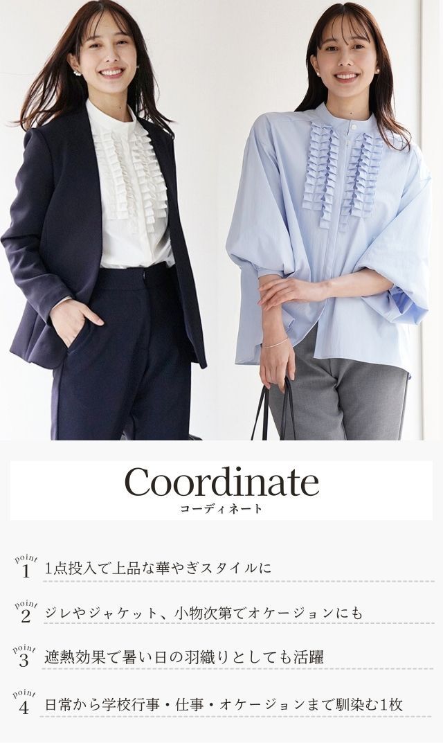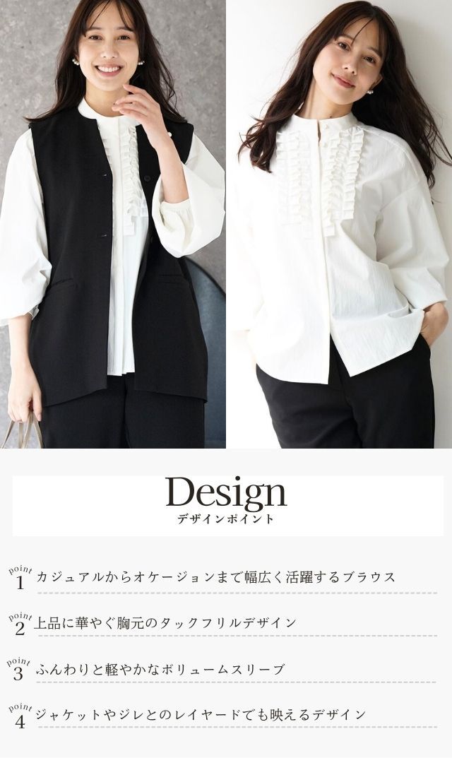 ・タックフリルを活かしたジレやジャケットとのレイヤードスタイルでオケージョンにもおススメ!