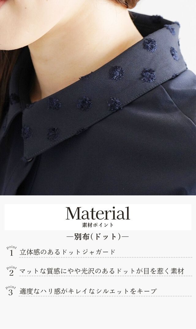 ・上質なドット柄のジャガード素材との異素材ミックス。