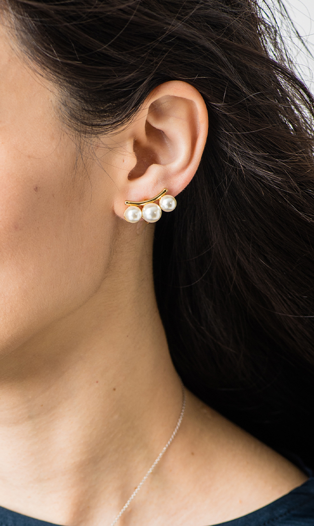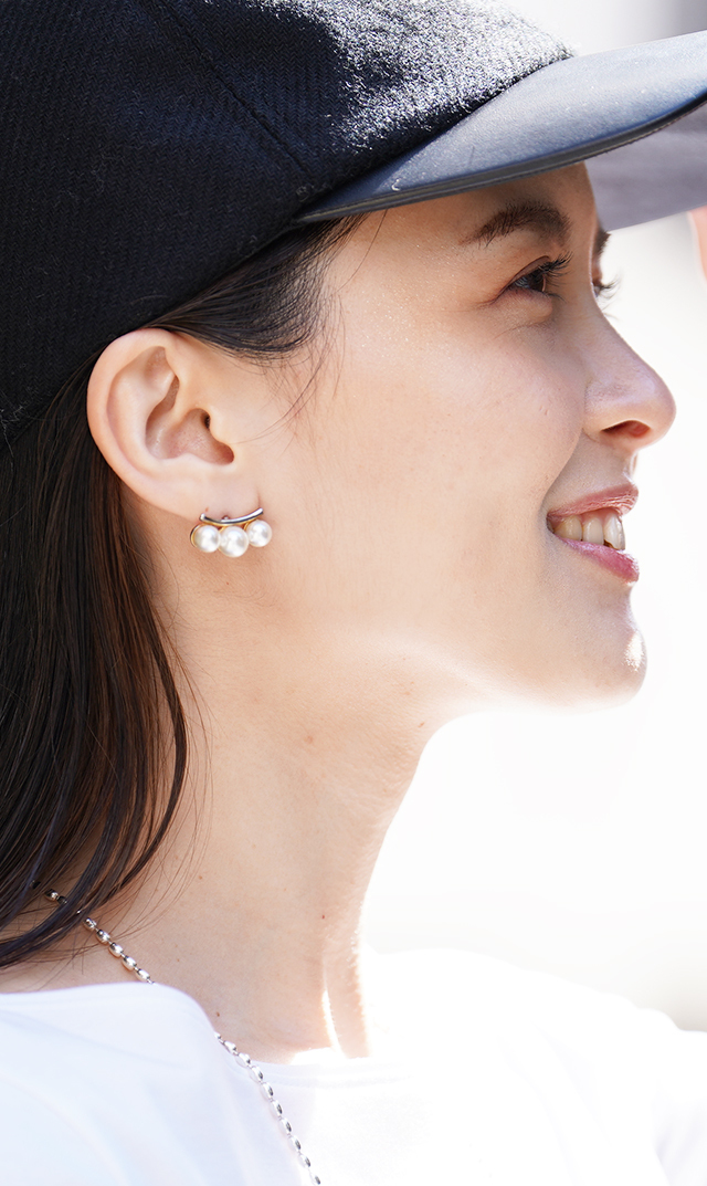 天然のパールの色味により近い、やや黄味がかったキスカ色のイミテーションパールを厳選し、パールならではの上品さもキープ。上品で清楚な印象に仕上がり、さりげなく日常に溶け込むので、幅広いスタイルで楽しんで。