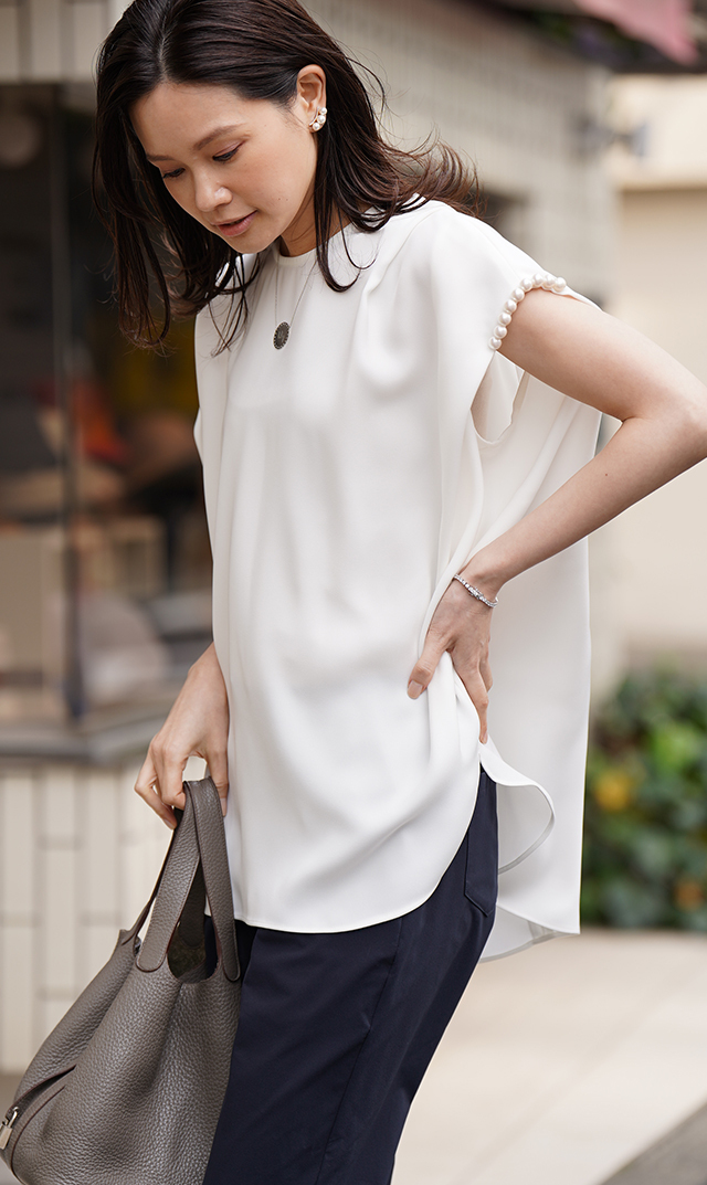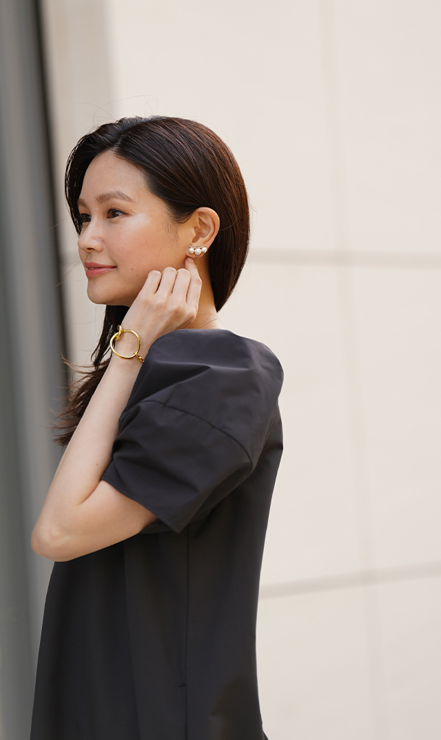 1点投入で顔回りを華やかに魅せ、女性らしさと上品さを叶えてくれるデザインが大人心を魅了。