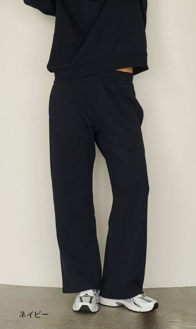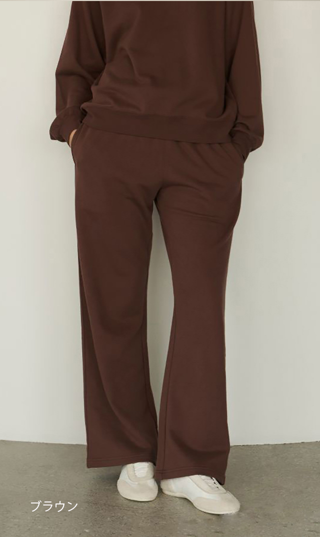 ・同素材のコンフォートスウェットトップスとのセットアップスタイルもおすすめ。