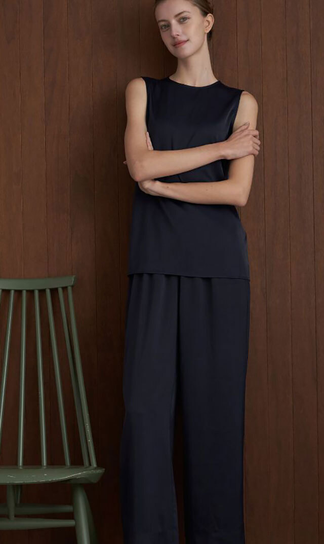 ・同素材のリラックスサテンパンツ、サテンスカートとのセットアップコーデもおススメ!