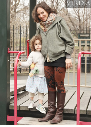 エスニックを上手くシティスタイルに取り込んでいるデザイナーのRaina。「H.Fredriksson」のジャケットや自身のブランド「Creem Collection」のボトムスなどホットなNYブランドをチョイス。女の子はママとは対称的に淡いカラーでスイートなイメージがキュート!